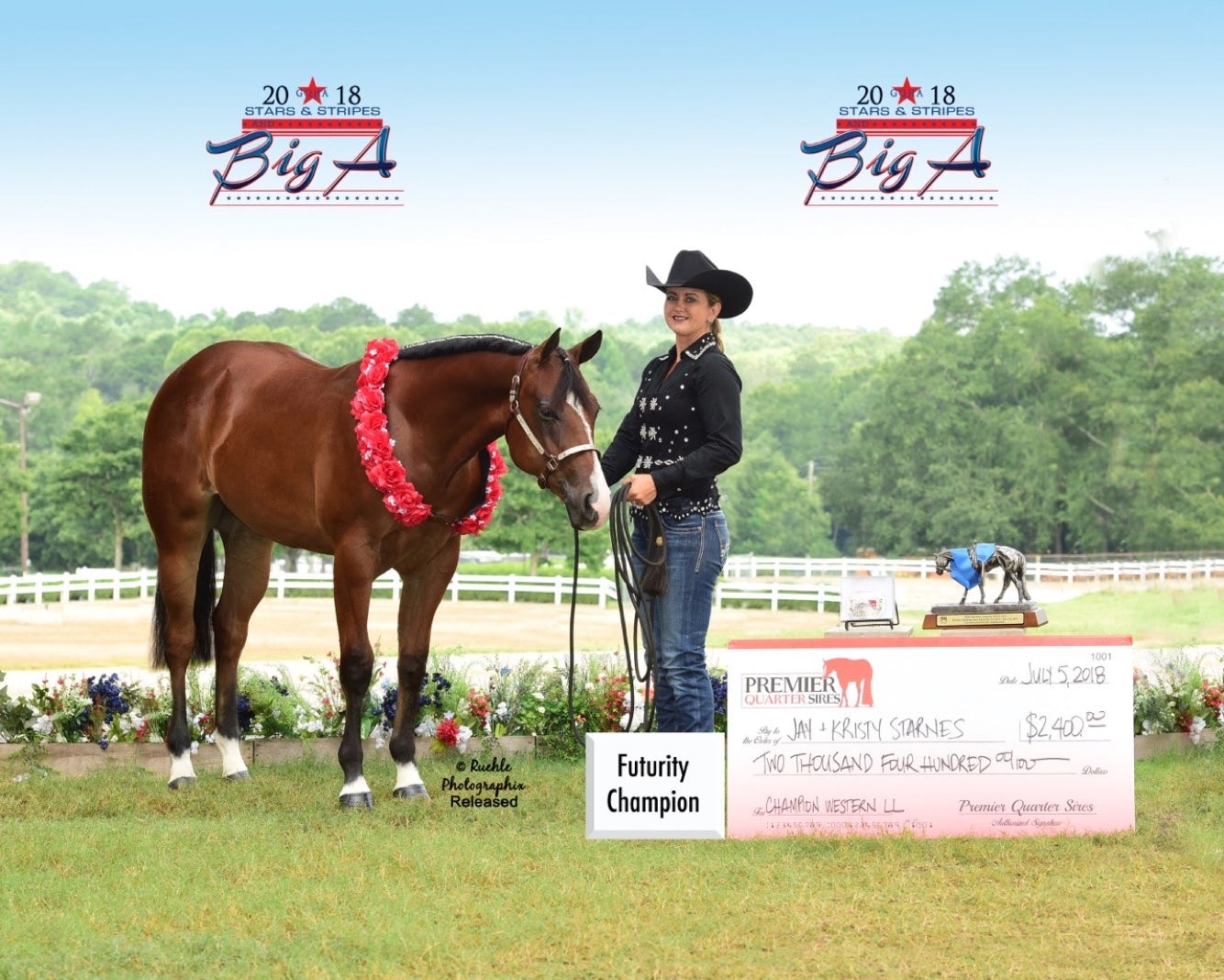 “Livin Da Dream” 2017 gelding sired by The Lopin Machine and out of Its Best To Be Hot (RL Best Of Sudden). Congress Masters Champion. 2018 PQS Lone Line Champion - Stars And Stripes show. Owned by Jay & Kristy Starnes.